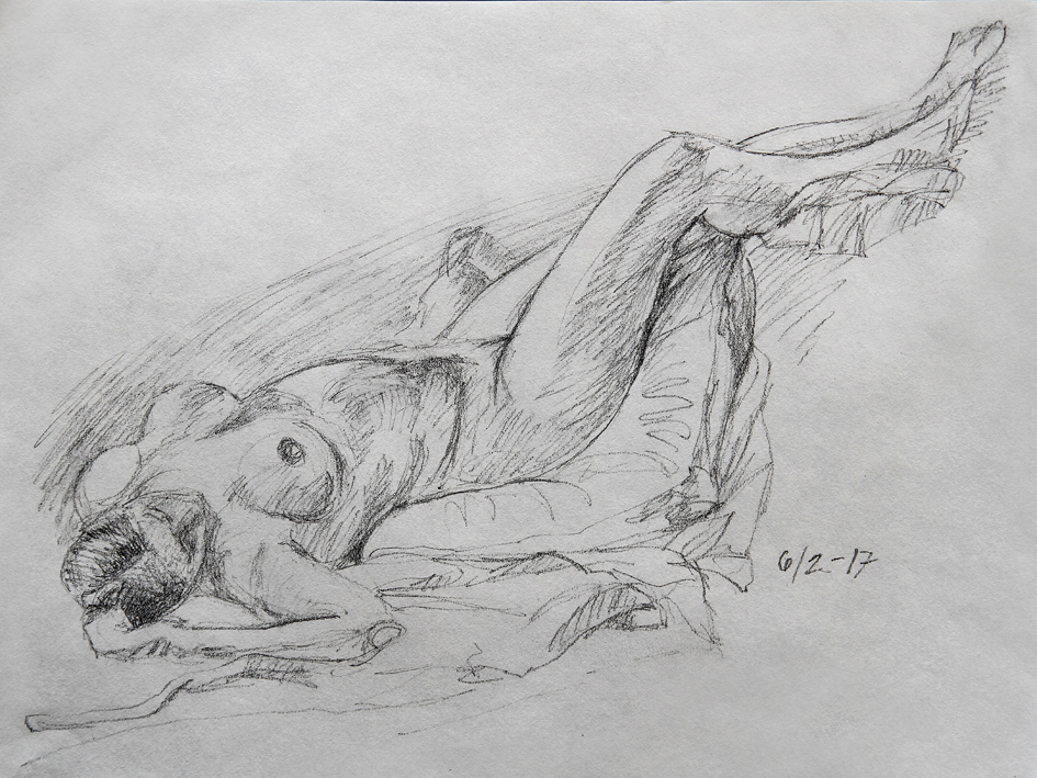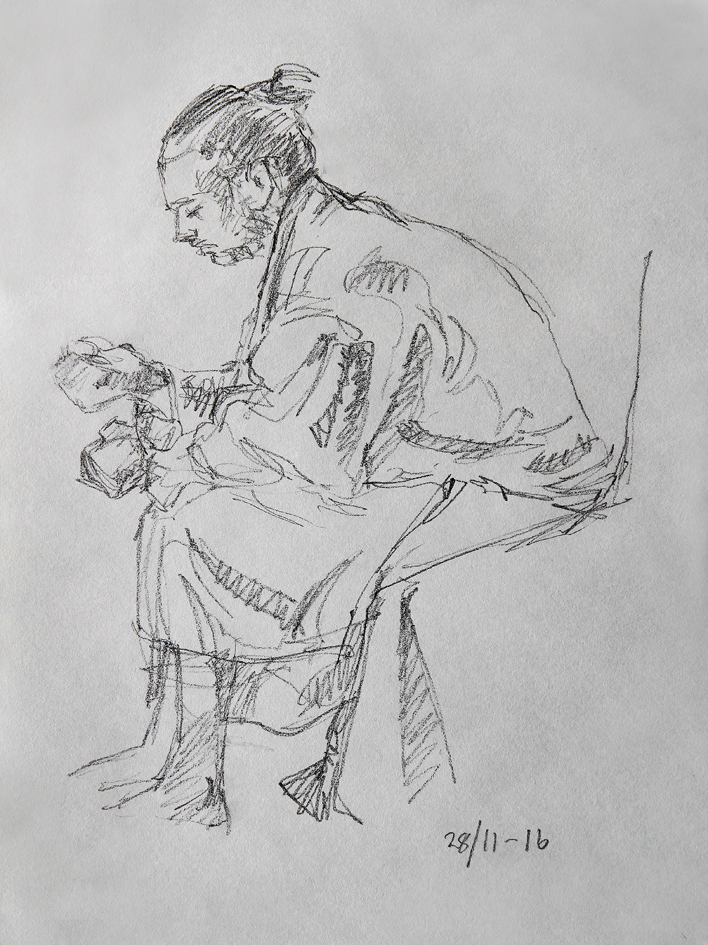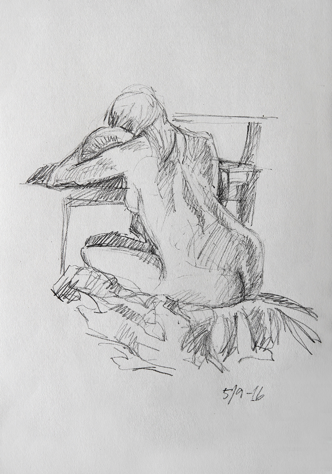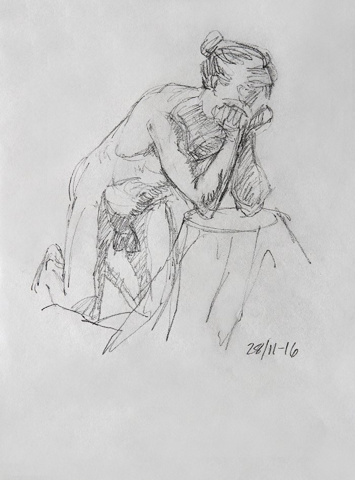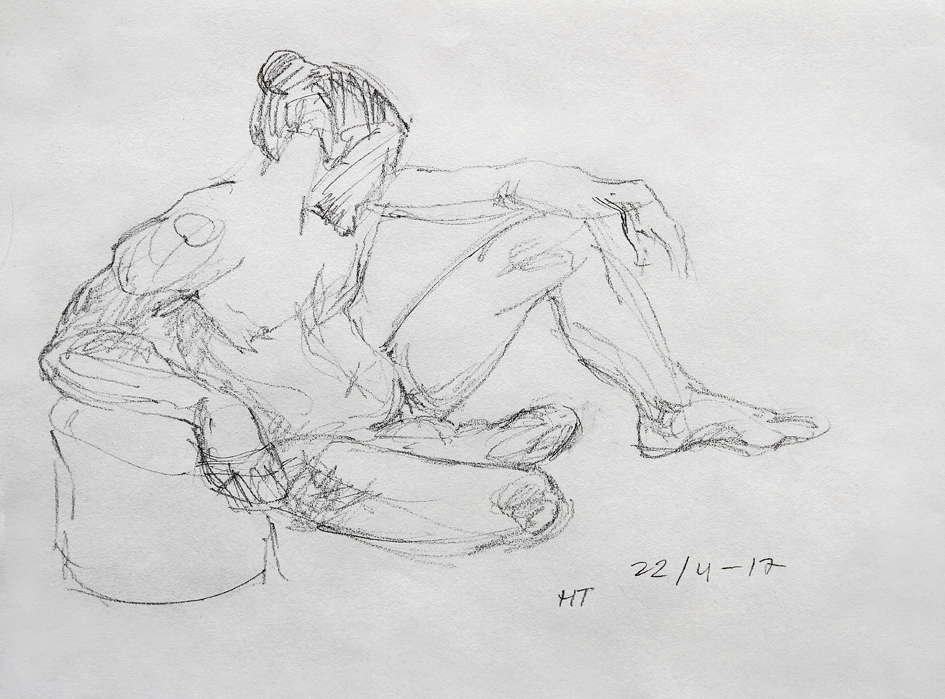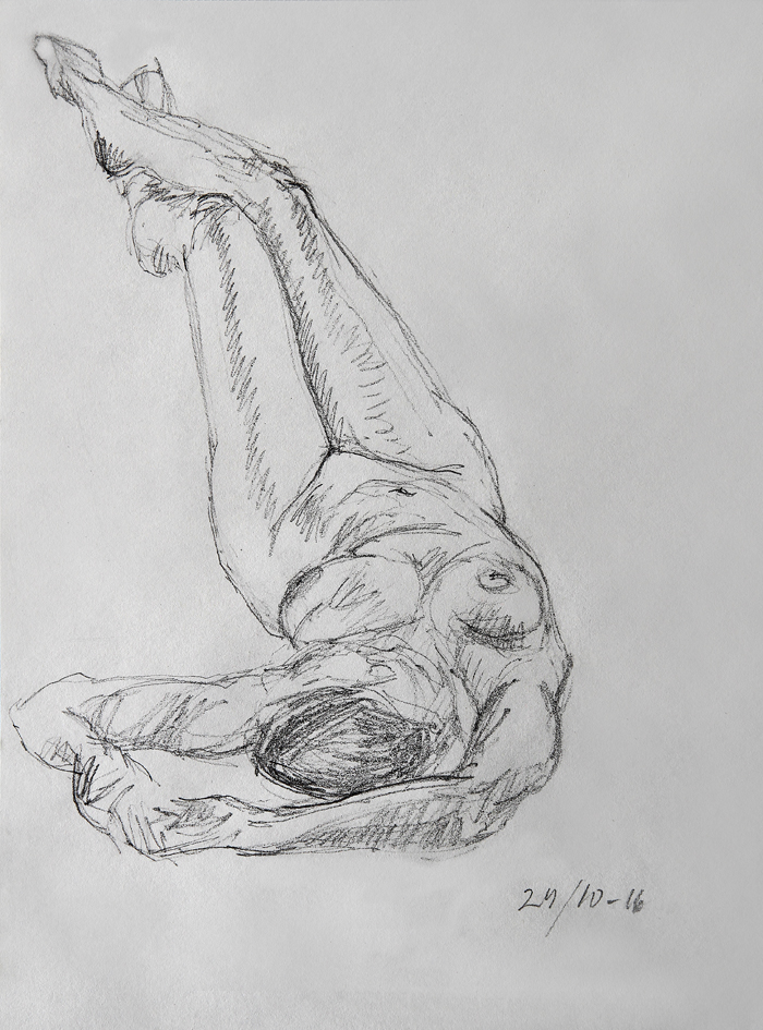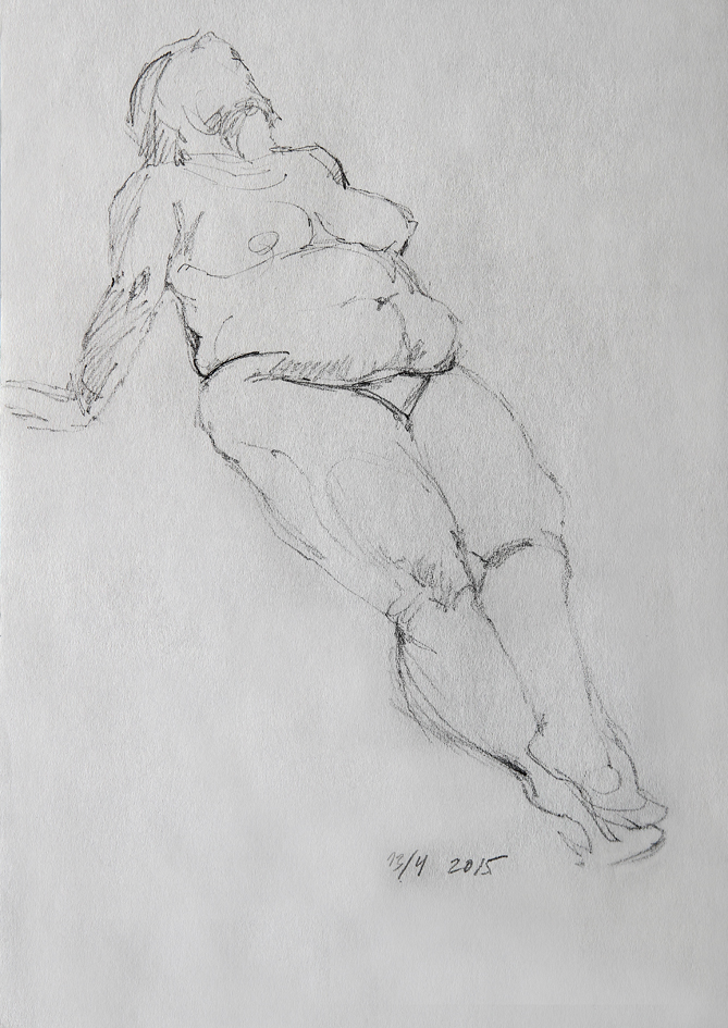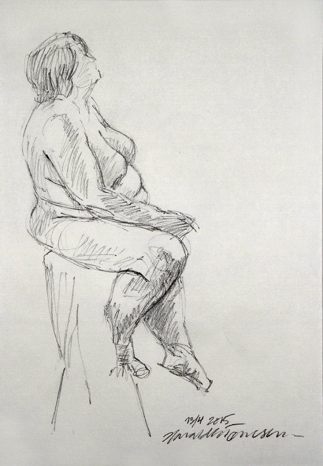 Eksempler fra skisseblokkene (A4), akt- og krokitegning utført i gruppen «Bergen Akt og Croquis»