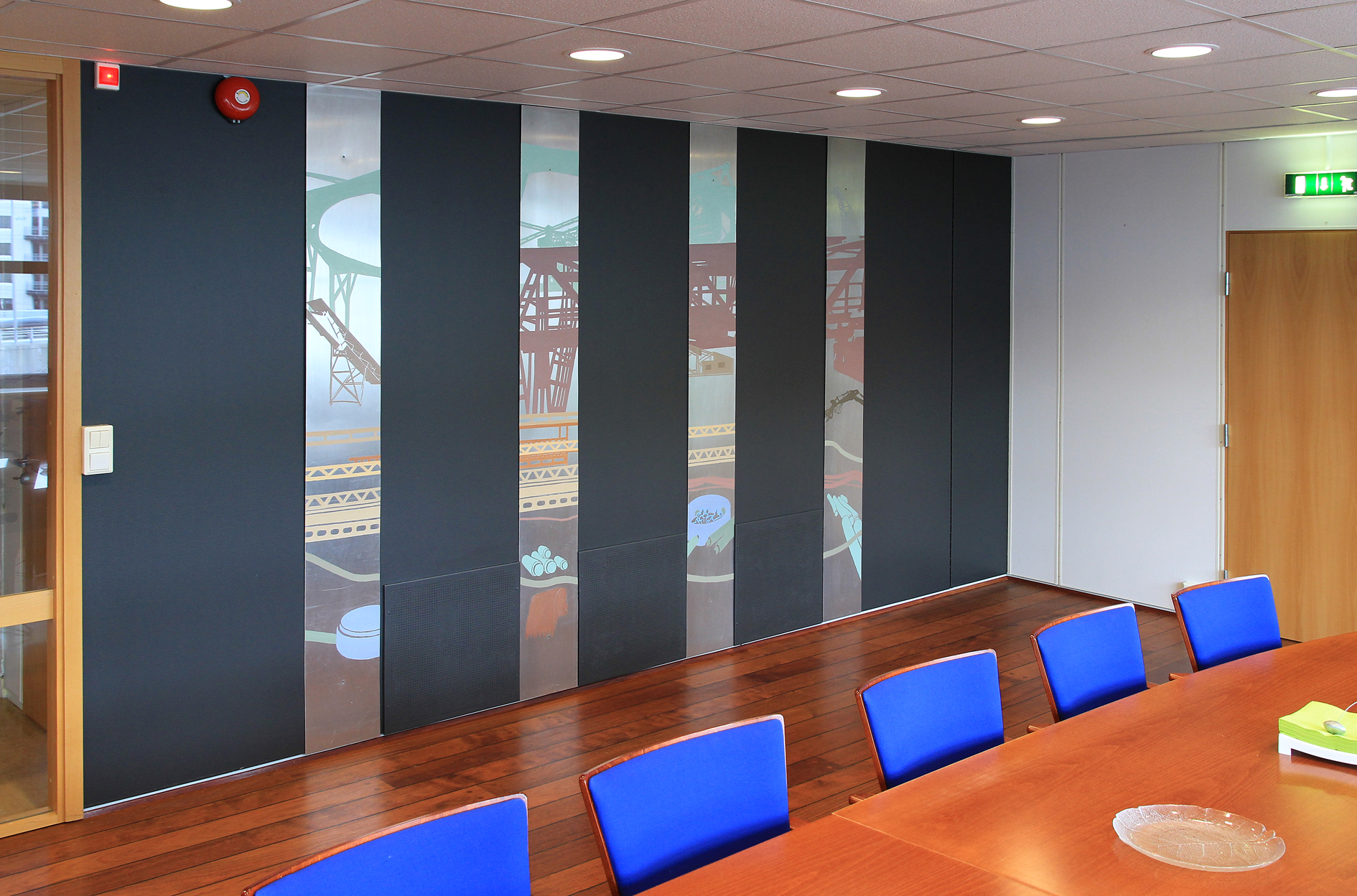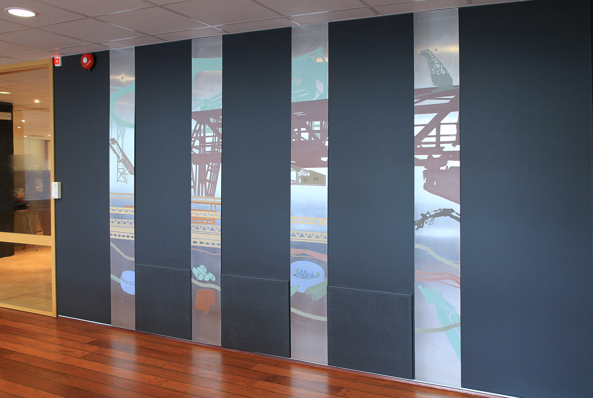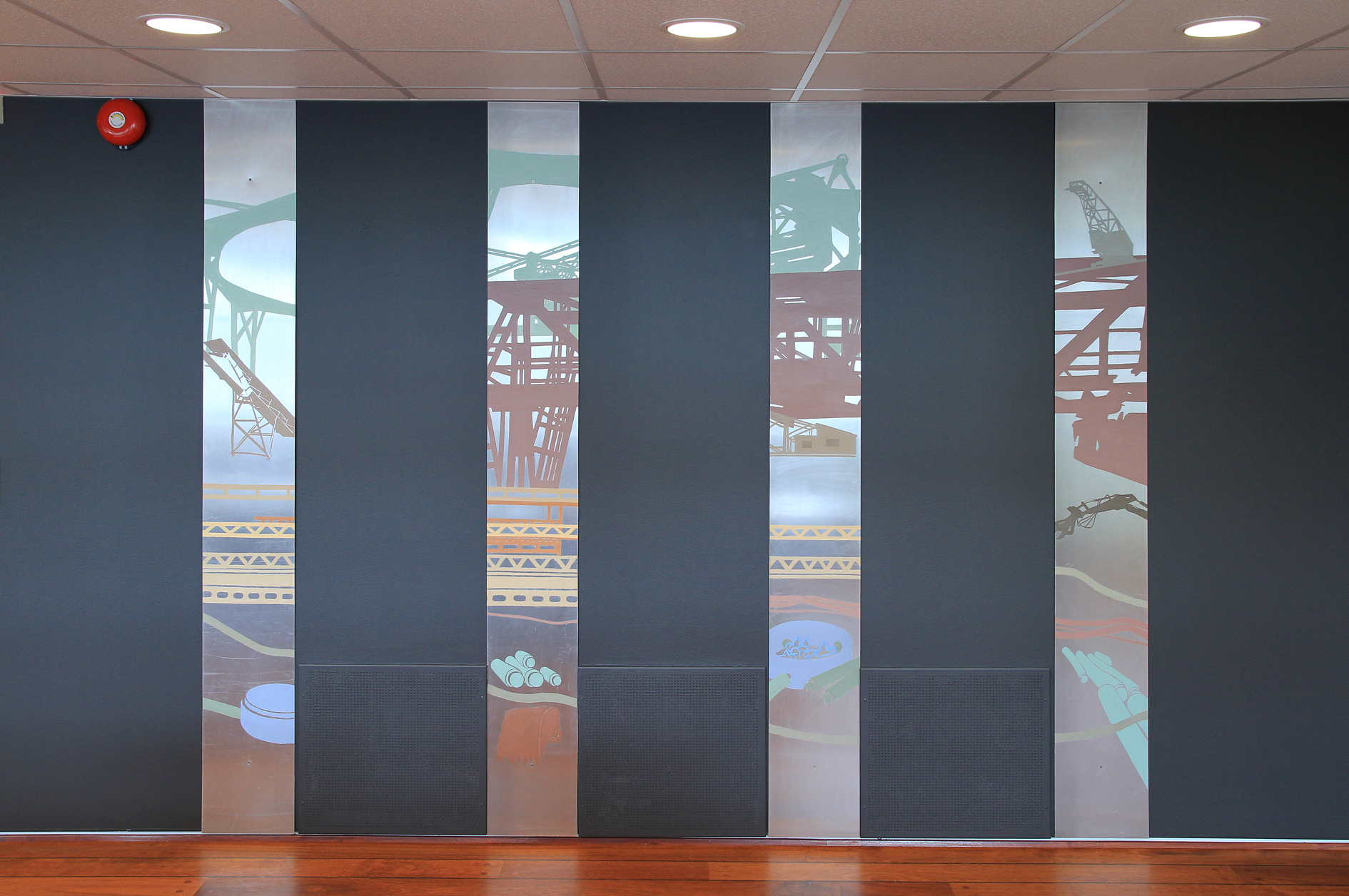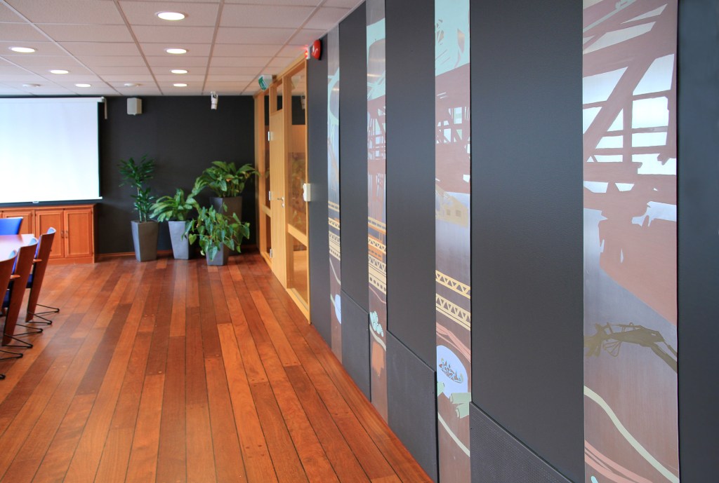 Oljemaleri på aluminiumsplater, 4 stk. hver 245 x 30 cm, for konferanserom, 2003