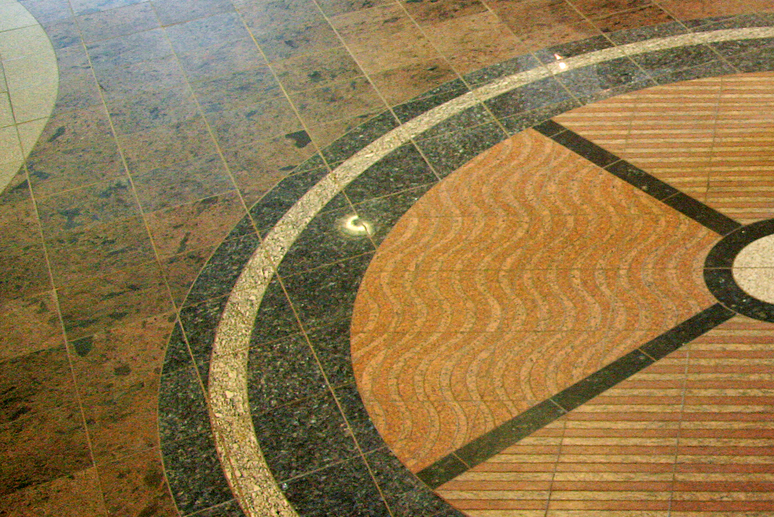 • 16 ulike typer norsk stein er valgt ut for mosaikkene; granittvarianter, marmor og kalkstein, enkelte med synlige fossiler.