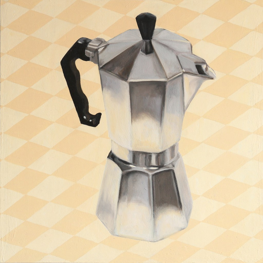 “Rekonstruksjoner”, 2010, olje på treplater, maleriserie: 8 (60 x 60 cm). Utstillingsfolder: “Pendel — malerier” [slideshow] Malerier 1996≫